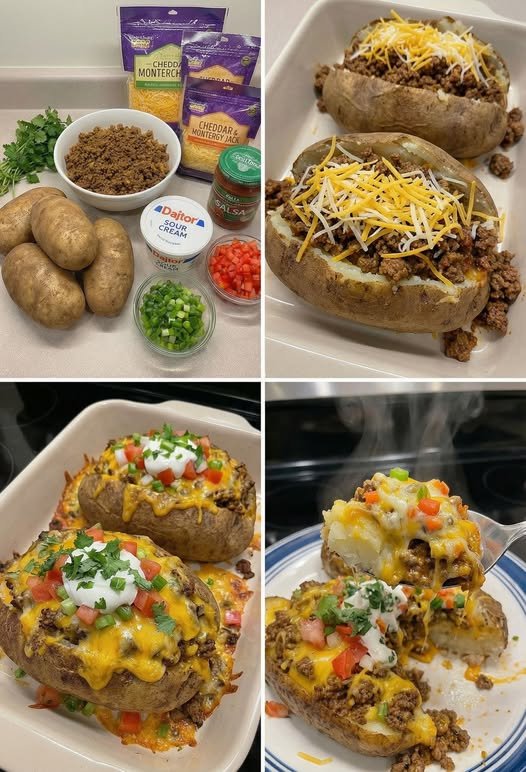 Taco Stuffed Baked Potatoes are a fun and filling twist on classic baked potatoes. Crispy on the outside and fluffy on the inside, these potatoes are loaded with seasoned taco meat, cheese, and fresh toppings for a satisfying meal. Perfect for weeknight dinners, game days, or a flavorful meal prep option.